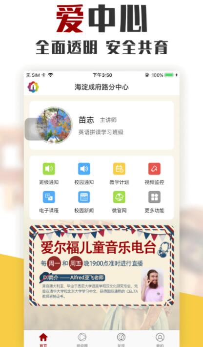 4.爱中心是北京爱尔福信息技术有限公司自主研发的家校互通类系统平台,教师端APP是该平台的移动端,为全国托管早教中心免费搭建家校互联的桥梁。家长通过苹果手机使用该APP,全方位打通家校数据,让家长随时了解孩子的在校情况。