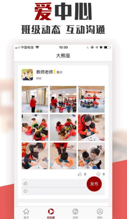 1:班级圈实时发布与收取,记录幼儿学习生活的图片、视频动态,分享孩子在园每一秒