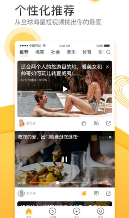 引入个性化推荐算法,为你带来感兴趣的短视频,懂你的品味,都是属于你的内容。