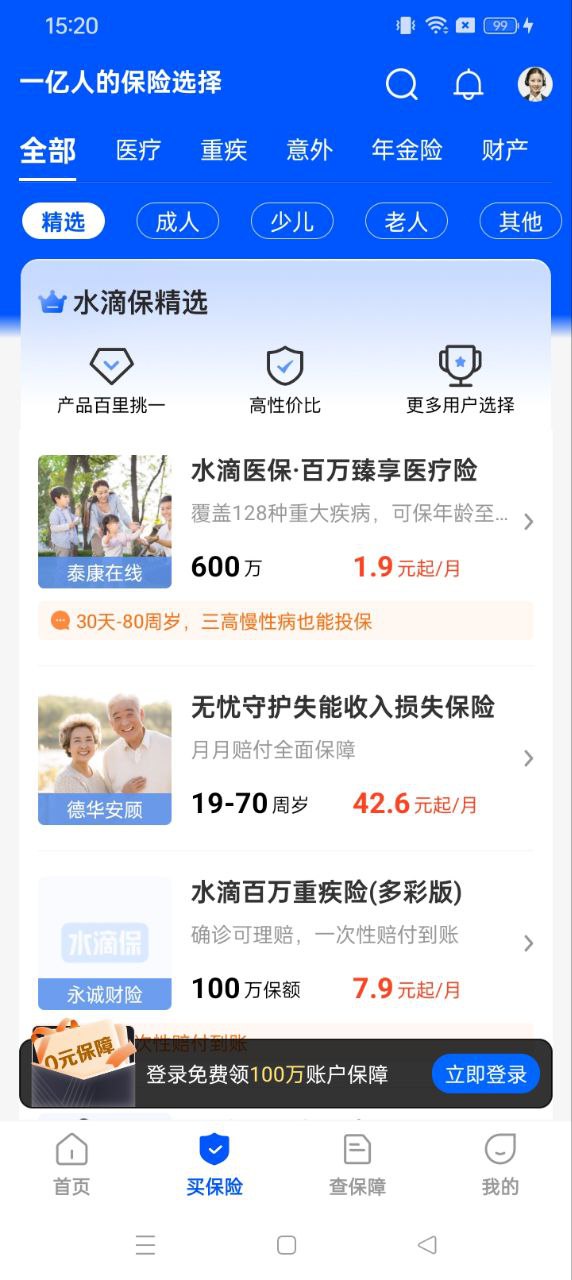 天有不测风云,每个人都会碰到点问题,车子、身体和房子之类。一旦遇到比较大的突发情况,资金周转不过来该怎么办?《水滴保》是一款保险类的软件,软件里有各种各样的保险,你可以慢慢进行选择,遇到不明白的情况可以电话资源我们的员工,一对一辅导保证你能够解决你想了解的。别再犹豫了,快去下载这款软件保护自己的身体健康吧。
