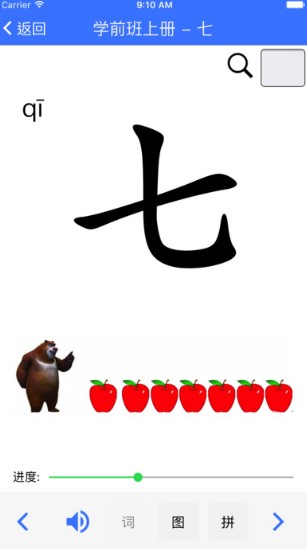 笔顺演示:可重复播放笔顺演示,让孩子快速掌握正确的书写格式