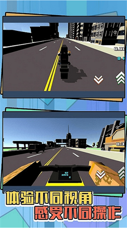 驾驶各种酷炫的摩托车,使用高超的技巧和各种道具在像素的世界里肆意飙车,全新的驾驶视角,模拟玩家在车内驾驶,享受不一样的驾驶体验。