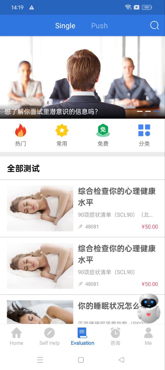 - 心理评估测试:该软件提供多种心理评估测试,帮助用户更好地了解自己的心理状况和问题,并获取相应的解决方案。
