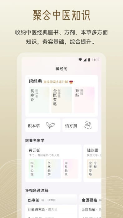 - 系统化知识分类:该应用以系统化的知识分类方式呈现中医药知识,方便用户查找和学习相关内容。