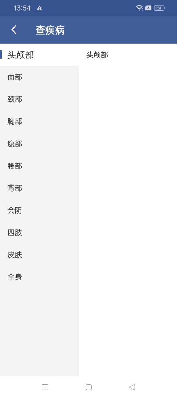 ---可以根据疾病名称及人体部位查询疾病,了解病因及治疗建议。同时也可以根据疾病找到疾病专长的专家。