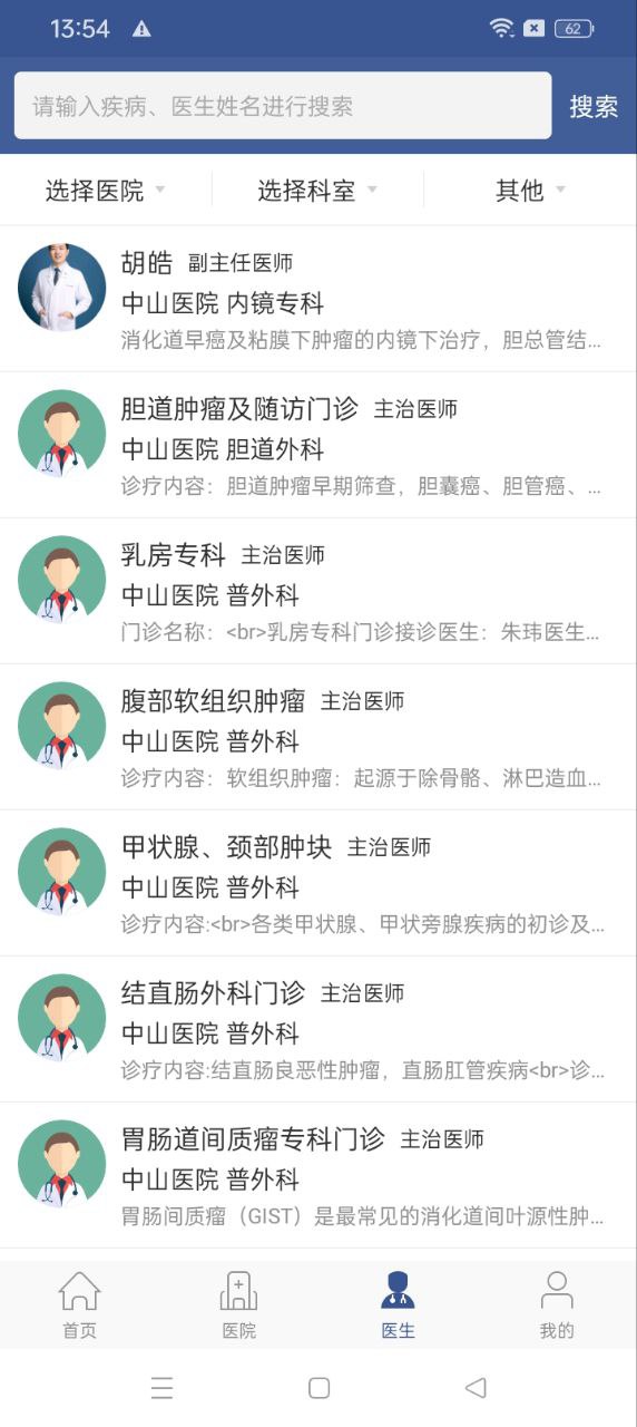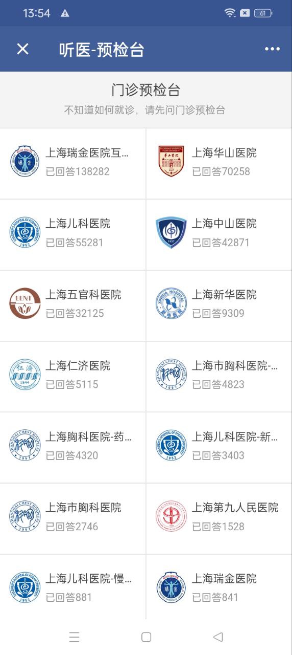 ---汇集了上海市各大三甲医院的医院、医疗特色和医生信息,全部信息来源于各大医院实时信息,门诊信息即时更新,方便用户查询。
