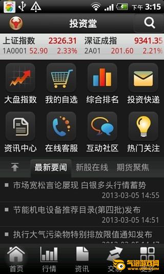 登录wap站即可查询股市、期货、外盘行情;软件下载专区选择适合您手机的股票软件;模拟炒股学习怎样炒股,演练炒股技巧;最牛最火爆的股友论坛和聊天室,各路高手谈股论金;在线客服功能,登陆手机论坛提问,客服会及时解答(投资通客服热线:0571-56696192)。
