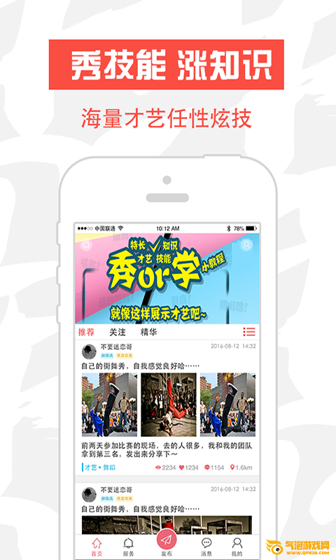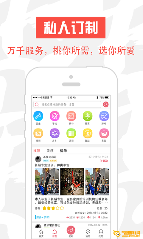 一个让所有人眼前一亮的app,一个让所有有才的一展所长的平台,你有一技之长吗,来这里吧,让你的生活更多乐趣,更多冒险。