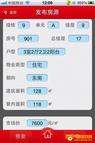 发布房源:置业顾问通过手机即可轻松发布自己的房源信息,包括房源的基本信息,同时支持四种方式上传房源图片。