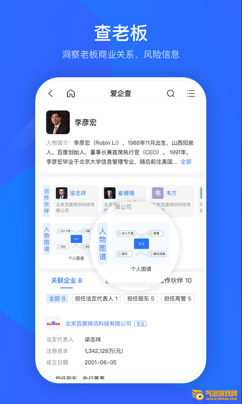 4、老板信息:个人图片、商业角色、所有企业、合作伙伴等