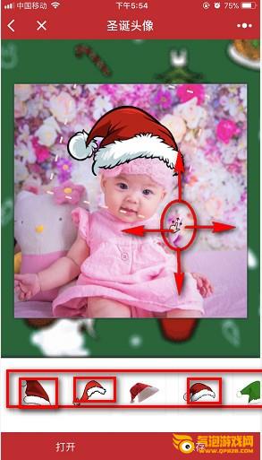 最后,选中帽子中间位置可以移动帽子的位置,在大小和角度都没有问题之后,点右下角保存就可以 立即将制作完毕的微信圣诞帽子头像保存到手机相册。