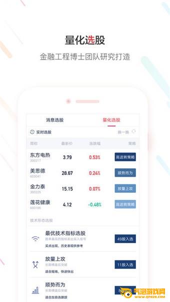 智能选股:提供精准选股策略,分不同维度进行选股。