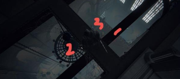 5、从刚才第四步下面顺着左边走图一,看到教堂房顶图二,跳过去右边从前往后第四个窗户进去。