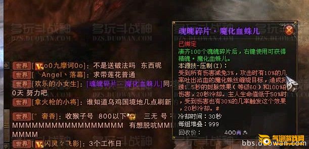 气泡游戏网斗战神攻略组为大家分享关于《斗战神ol》斗战神魔化血蛛儿怎么来?斗战神魔化血蛛儿本源技攻略,斗战神,魔化血蛛儿,斗战神魔化血蛛儿,玩法高级战神本源的相关攻略和资料: