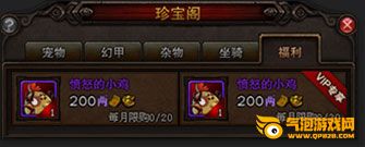 普通玩家每月可买20只! VIP玩家每月可额外购买30只,共50只!