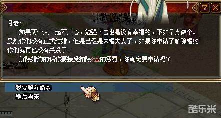 完成了爱情考验之后,可以在月老处登记,并确定婚期;