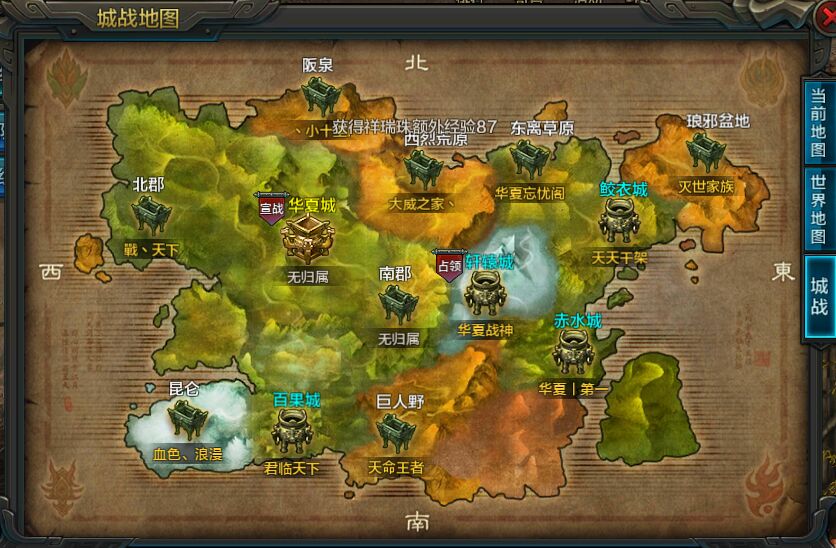 阪泉 北郡 昆仑 巨人野 南郡 西烈荒原 东篱草原 琅琊盆地