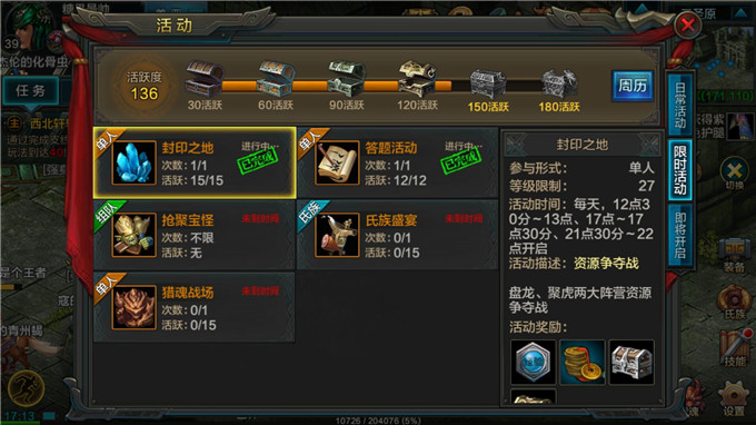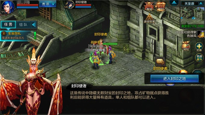 玩家可通过活动——限时活动中点击封印之地或活动开始后弹出的提示框,寻路至活动NPC“封印使者”进入。