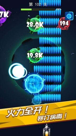 1、完成所有的冒险开启无尽射击之旅,超有趣的闯关玩法,每种病毒上斗写着攻击的次数,玩家可千万不能碰到病毒哦;