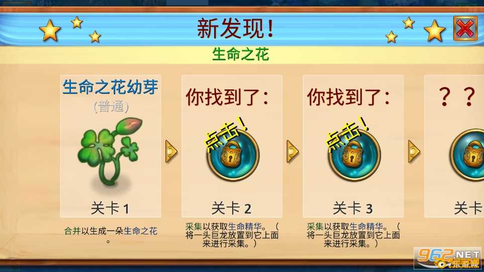 3.藏好地图等你解锁,与飞龙战斗,打开宝箱,获取神秘稀有物种,让你的天堂有更多的飞龙。