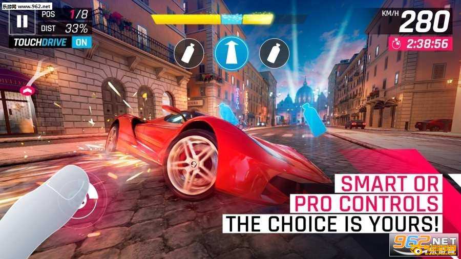 掌握创新的TOUCH DRIVE,这是一种新的控制方案,可以简化转向,让玩家专注于赛车的乐趣。您还可以切换到手动控制(倾斜或轻击转向),并学习如何像专业沥青赛车一样驾驶。