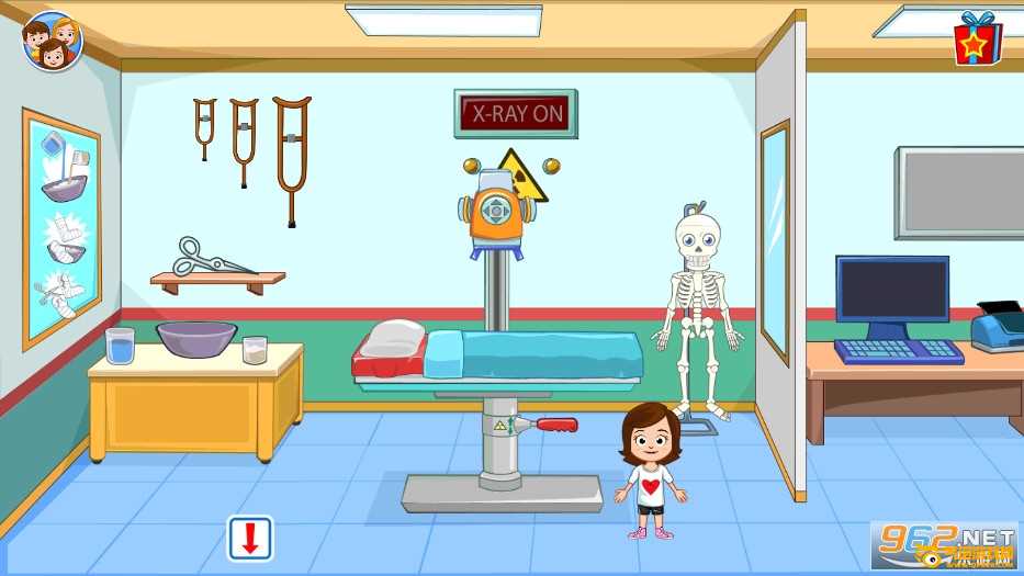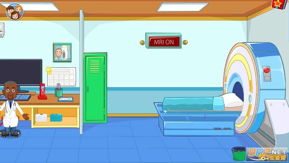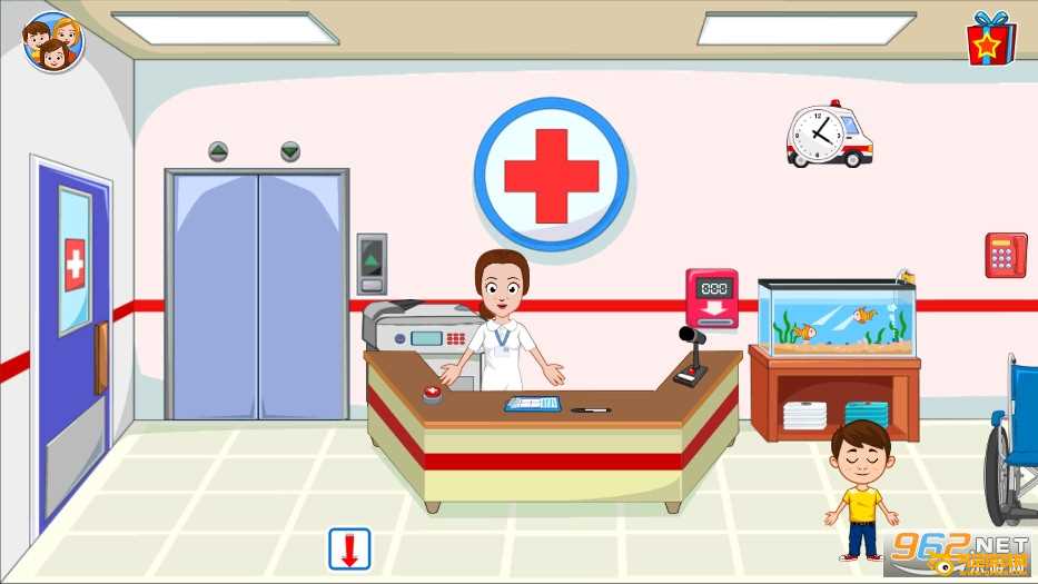 医院周围的游戏从未如此有趣。我的家乡:医院有很多很棒的房间,比如家庭医生、x光室和新生儿护理室。看,一个婴儿刚刚出生!