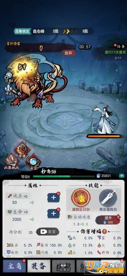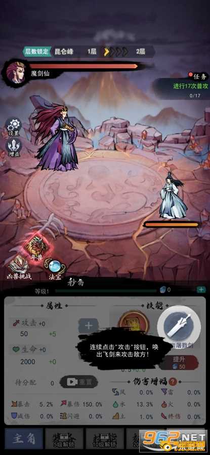 3.培养提升各种强大属性,探索未知的八荒之地,挑战凶猛的妖兽,感受燃烧驱魔的快感。