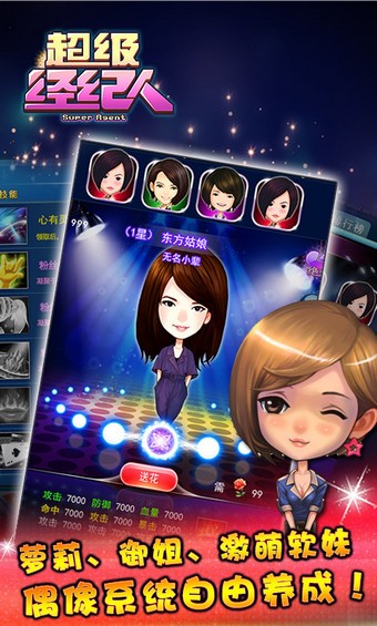《超级经纪人》玩家将在游戏中扮演经纪人,在游戏中培养各种偶像来控制娱乐圈,而在游戏中,玩家可以轻松获得VIP演唱会门票、明星签名CD、线下会议等海量明星环绕!