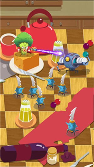 1、游戏分为两大派蔬菜水果、厨房刀具,要是刀叉们输了今天的晚餐就没有找落了。