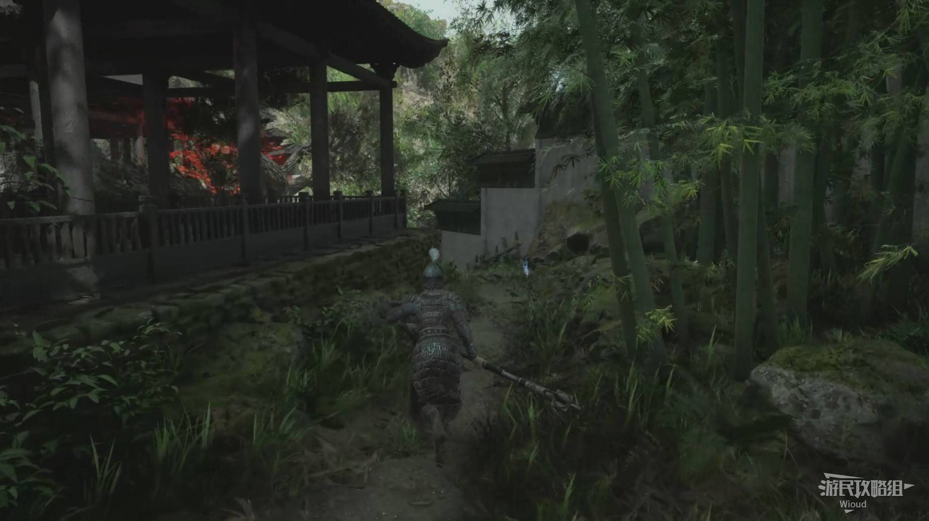 从地图【佛源镇】的神龛【丹青苑】开始,玩家可以沿着神龛右侧的楼梯进入丹青苑。进入后,向左走,沿着走廊一直移动到尽头。