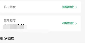 在“更多”界面中,找到“调整额度”选项,点击进去。这里你可以选择“信用额度调增”或者“临时额度调增”,根据你的需求进行选择。
