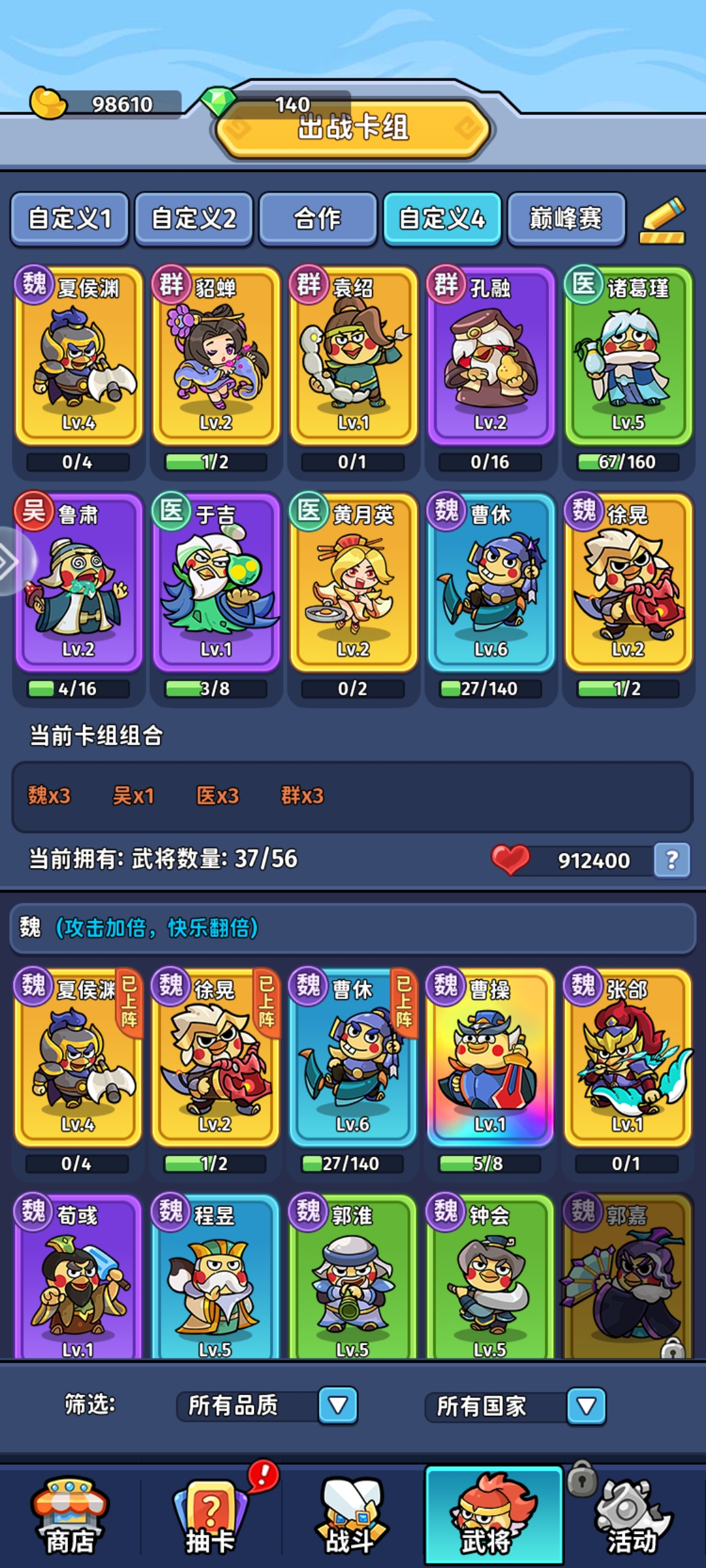 在《小小兵者》这款游戏中,玩家不仅可以感受到三国时期的热血与策略,还能收集到丰富多样的三国武将卡牌。游戏中的武将卡牌涵盖了魏、蜀、吴以及群等多个阵营,玩家需要根据战斗场景、对手阵容以及武将的特点,巧妙地搭配出最佳的战卡牌阵容。本文将为大家推荐一些适合平民玩家的推关阵容,助你在游戏中披荆斩棘,快速通关!
