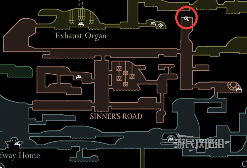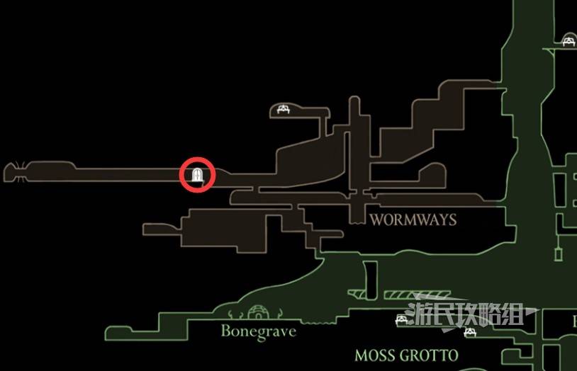 第三扇门位于沙噬虫道,从骸底镇前往苔穴区域的电梯上方。玩家需要对敌人使用冲刺和空中攻击才能进入这扇门所在的隧道,开启后可获得【漫游者纹章】。这就像是挑战高难度副本,勇敢者才有机会获得丰厚的回报。