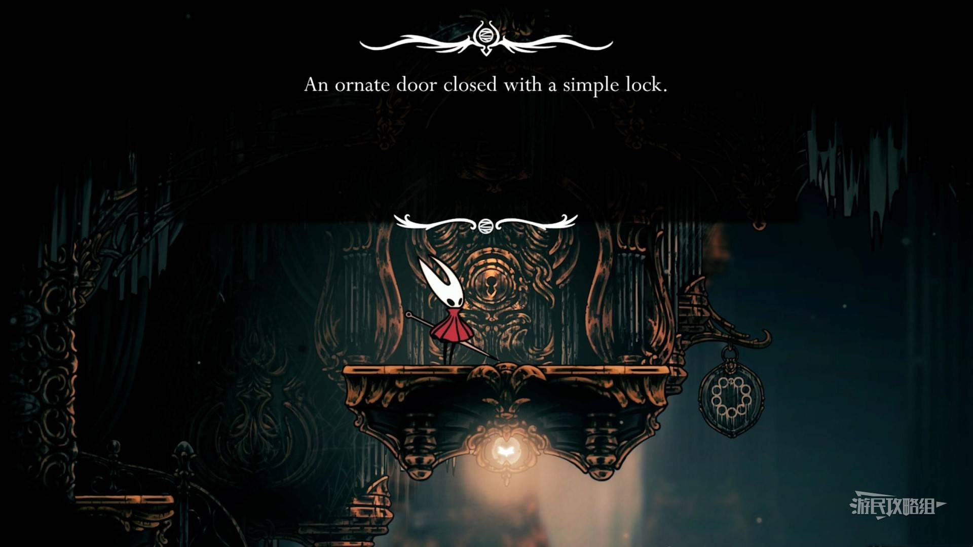 在解锁冲刺后,玩家可以穿过熔岩区域,在深坞找到这扇门。这个区域不仅可以获得大量念珠奖励,右上角还可以开启通往远野的近路,并获得工具【燧石板】。就像是在游戏中找到一条捷径,让你快速提升实力。