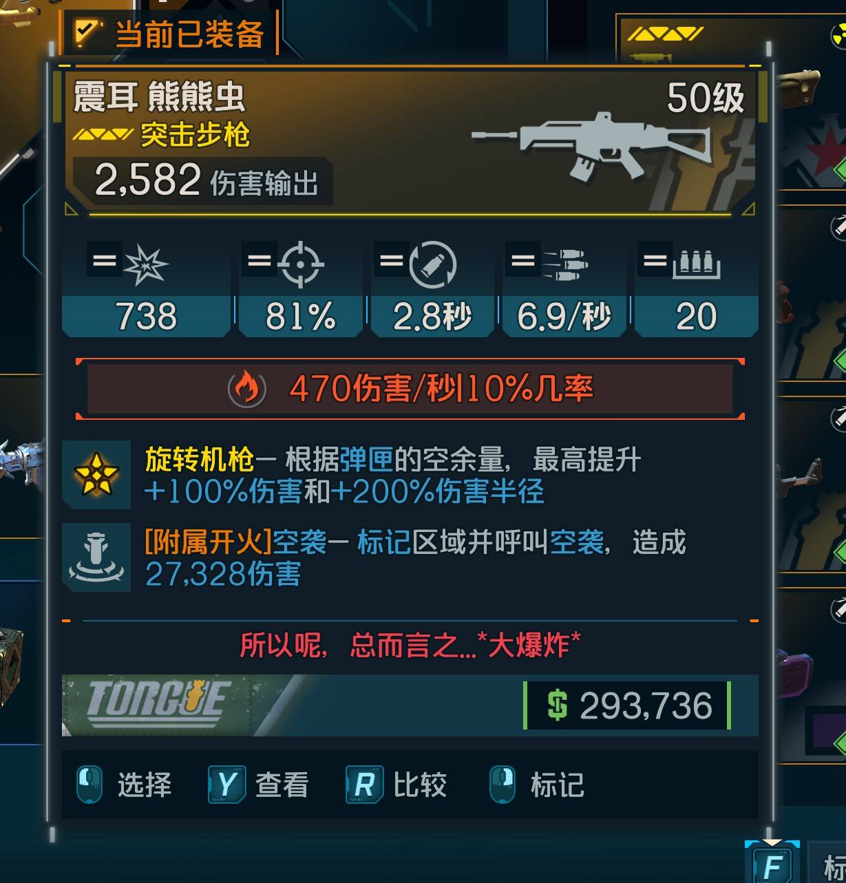 这把武器射出的子弹能造成范围伤害,弹匣余弹量越多,伤害和爆炸范围越广。尽管射速较低,但优秀的精准度弥补了这一点,手感也相当不错。即使到了后期,伤害依然可观,唯一的缺点是20发的备弹量似乎有些不足,综合评价给到7分。