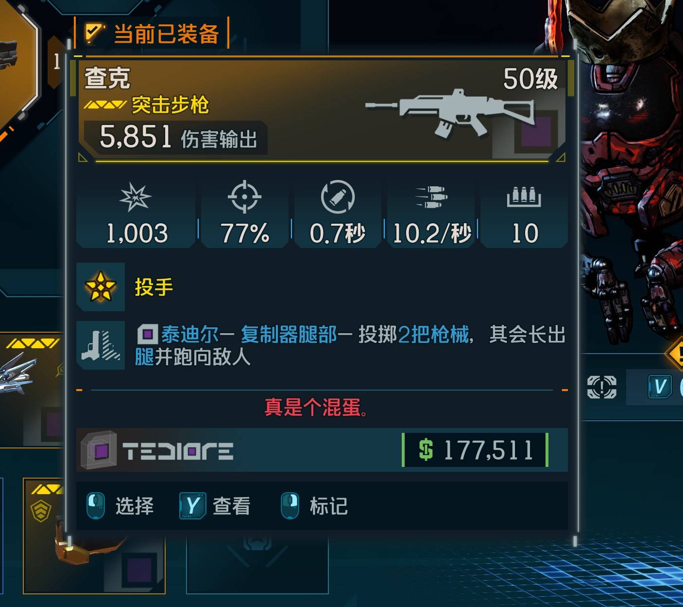 这把武器我连1分都不想给。附加词条让人捧腹,原本以为是投掷出去的自动炮台,结果却是两个自爆卡车。伤害极低,且如果在两个自爆卡车未爆炸前重新投掷,前面的就会被卡掉。总之,这把武器的表现实在让人失望,综合评价为1分,连土豆雷都不配提鞋。