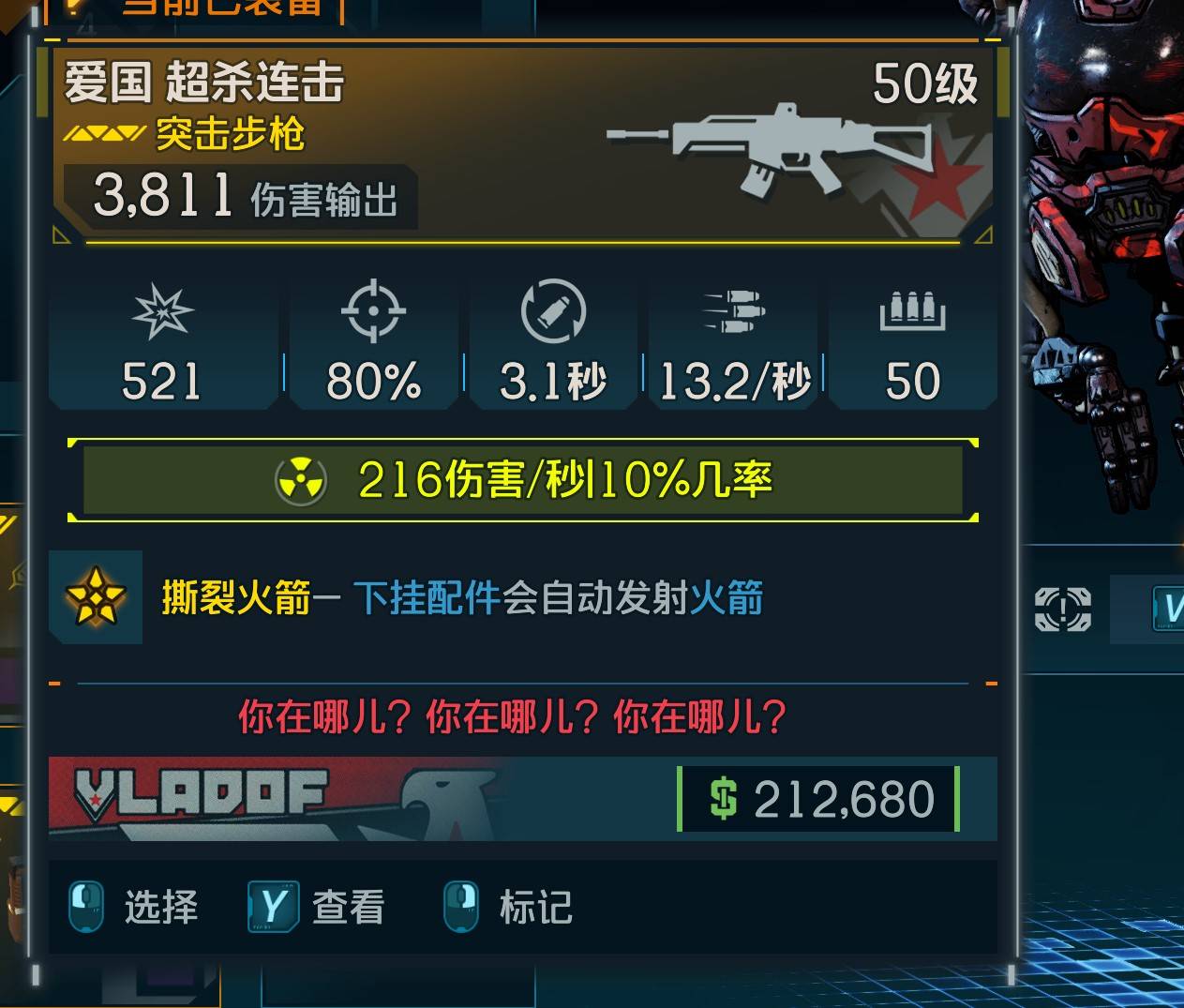 这把武器在突击步枪的基础上增加了火箭发射器,射速和精准度都相当不错。与一般需要手动切换的下挂不同,超杀连击的火箭发射器可以在平时的射击中穿插,让普通伤害实现质的飞跃,具备了对群体的强大能力。在游戏后期表现也非常优秀,综合评价给到9分。
