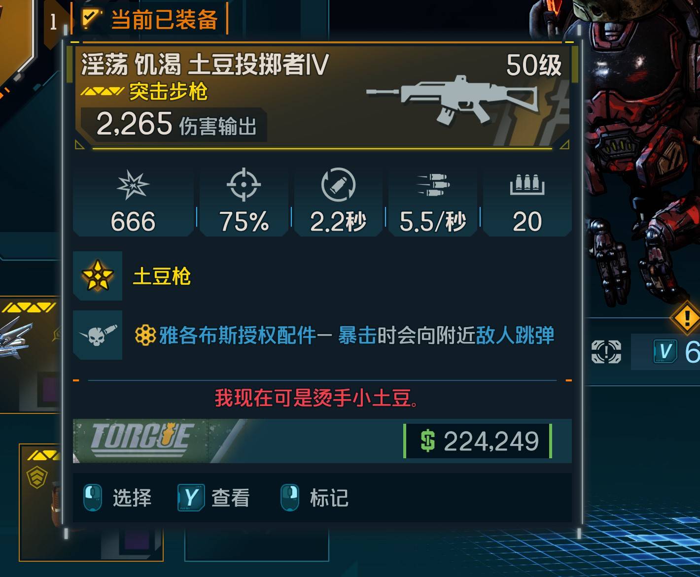 这把武器射出的子弹竟然是会爆炸的土豆,实在难以想象它的使用场景。射速较低,精准度一般,20发的弹匣也不算好,伤害极低,甚至在玩具中都算是下等。唯一有趣的地方是联机时可以用来“摸鱼”,综合评分为2分。