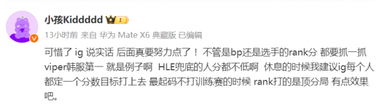 一位前主播KID批评选手Rank太低,建议他们提高游戏水平。KID认为IG选手应该有更高的目标分数,并表示不满选手表现。