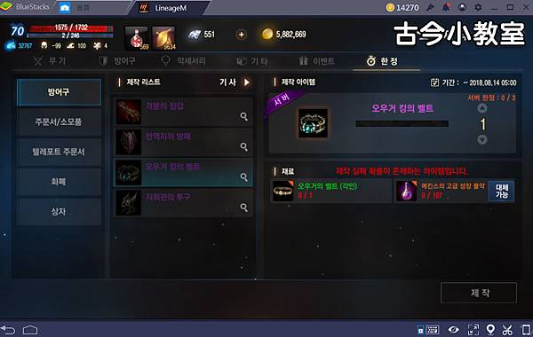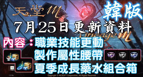 《天堂M- 韩版》07月25日更新(职业技能更动、属性腰带、夏季成长药水箱)