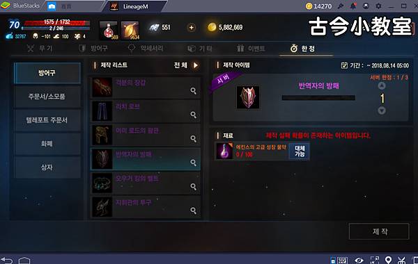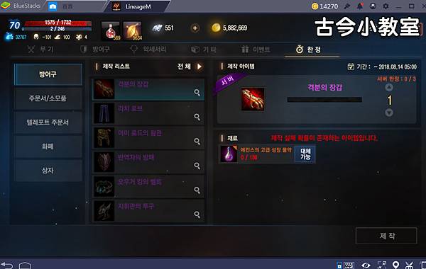 传说装备的 製作,每个伺服器每种装备 3个,但是製作有机率失败唷!!!