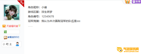 【回帖格式】角色名/区服/角色编号+竞猜活动+竞猜内容