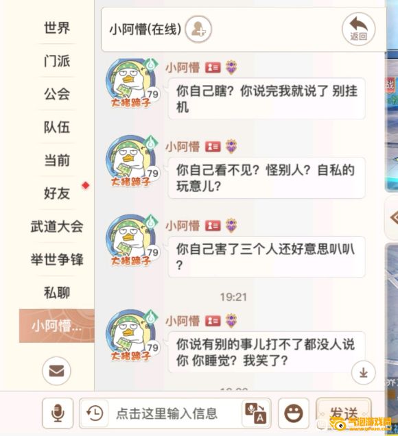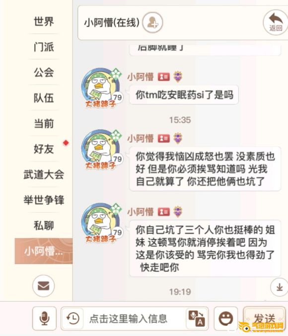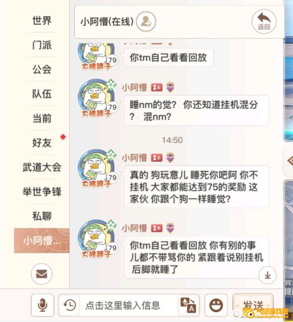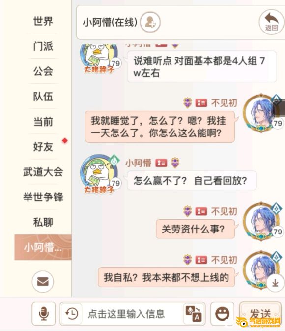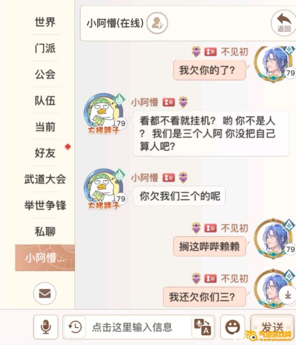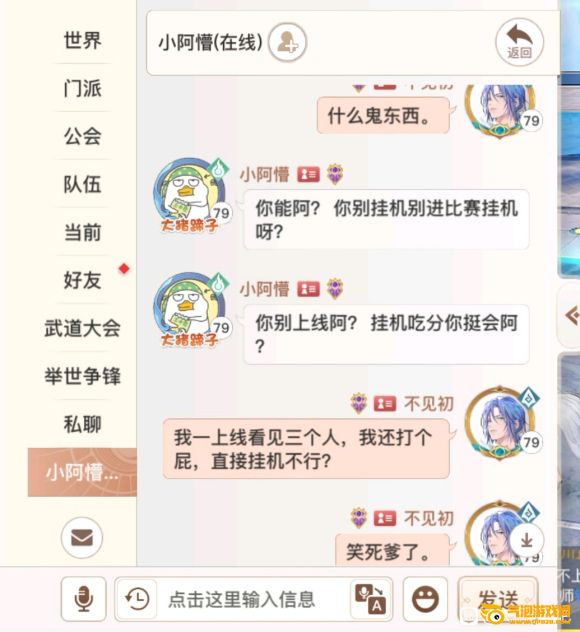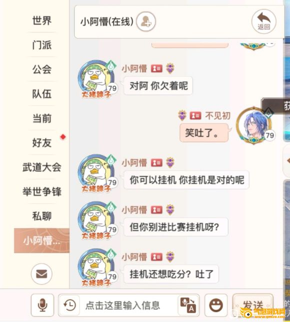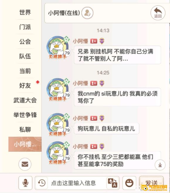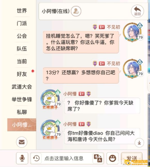 至于我为什么挂机,第一我昨天通宵到中午11点,实在起不来,眼睛都睁不开,公会的人都知道我下午能醒基本不可能。所以我每周都是卡的闹钟。今天我一进游戏,连我就三个人,我就挂机睡觉了。懒得打。然后一个b奶一直骂劳资,笑死了。我还欠你们仨?一个破比赛。混混得了。大家都是这么点分。