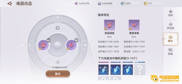 融合32次,把之前两个1级的7技能也扔了进去,7+7=5