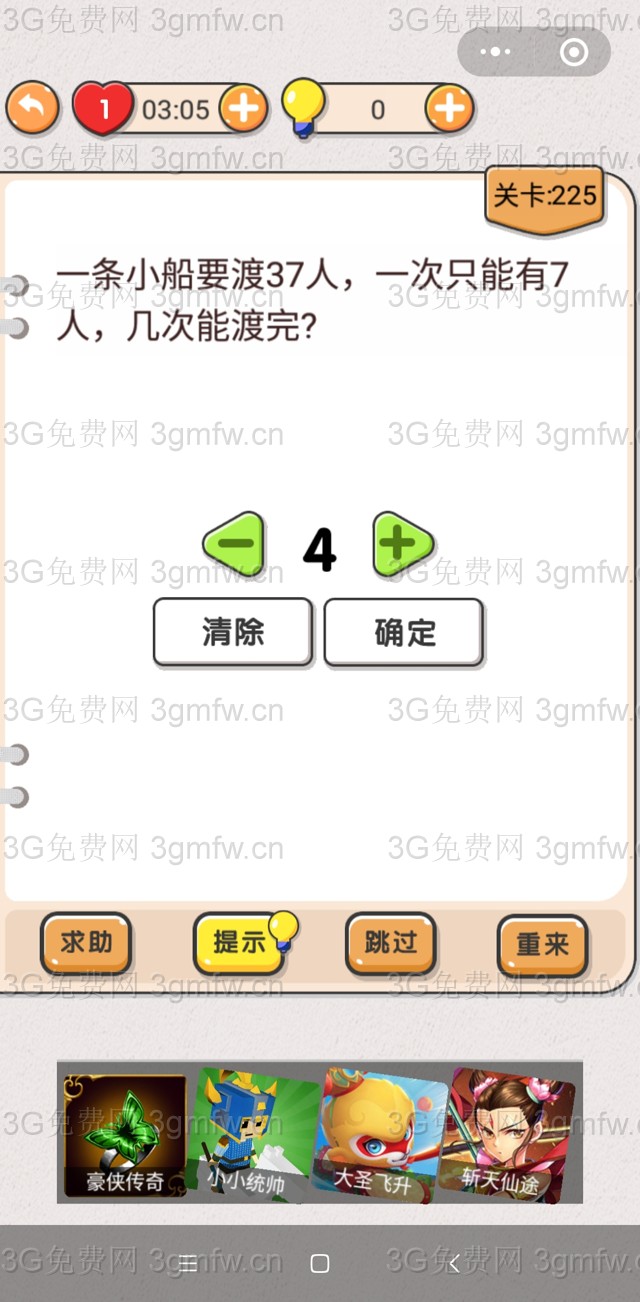 《我不是猪头》第225关怎么过_一条小船要渡37人一次只能有7人几次能渡完图文攻略