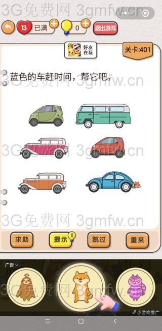 《我不是猪头》第401关怎么过_蓝色的车赶时间帮它吧图文攻略