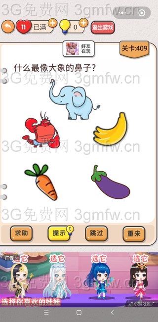 《我不是猪头》第409关怎么过_什么最像大象的鼻子图文攻略