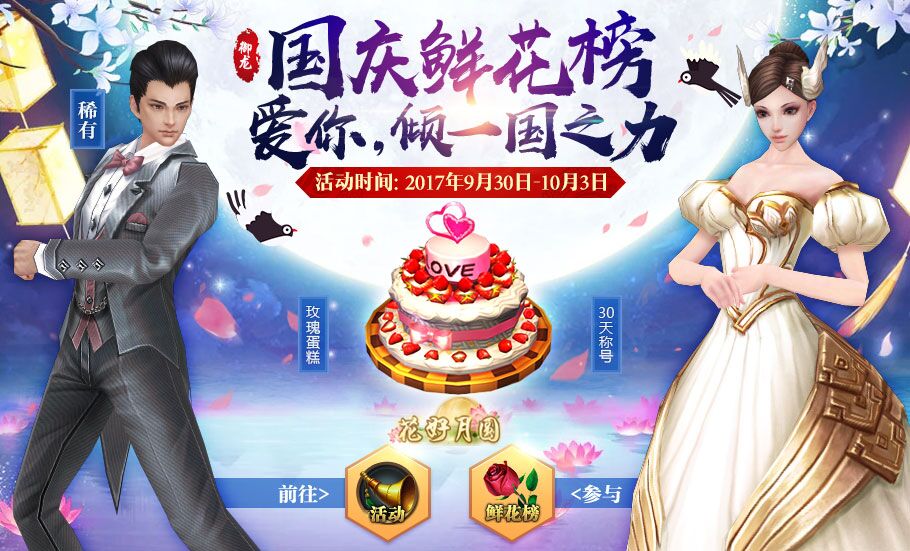 活动内容:活动期间内,本服鲜花榜排名与收花积分需达到一定要求即可获得相应奖励。榜单结算时间为10月3日。