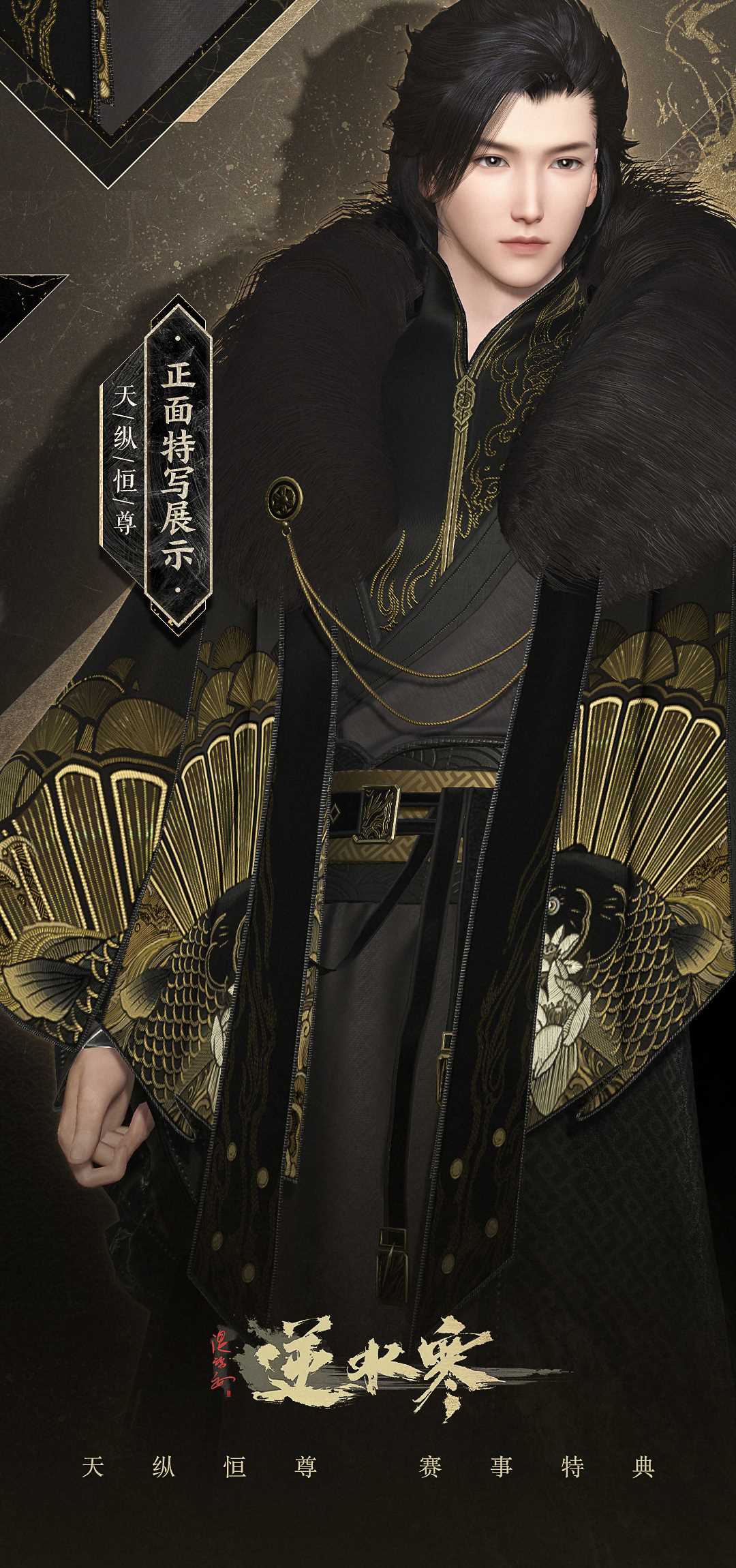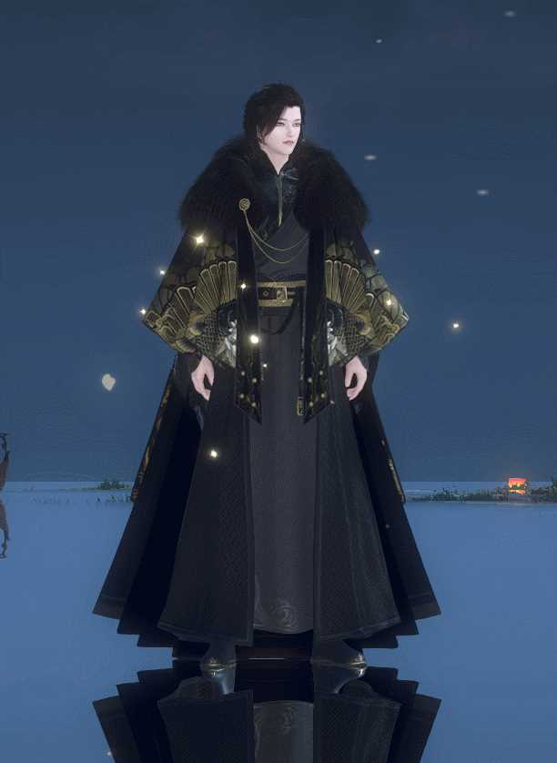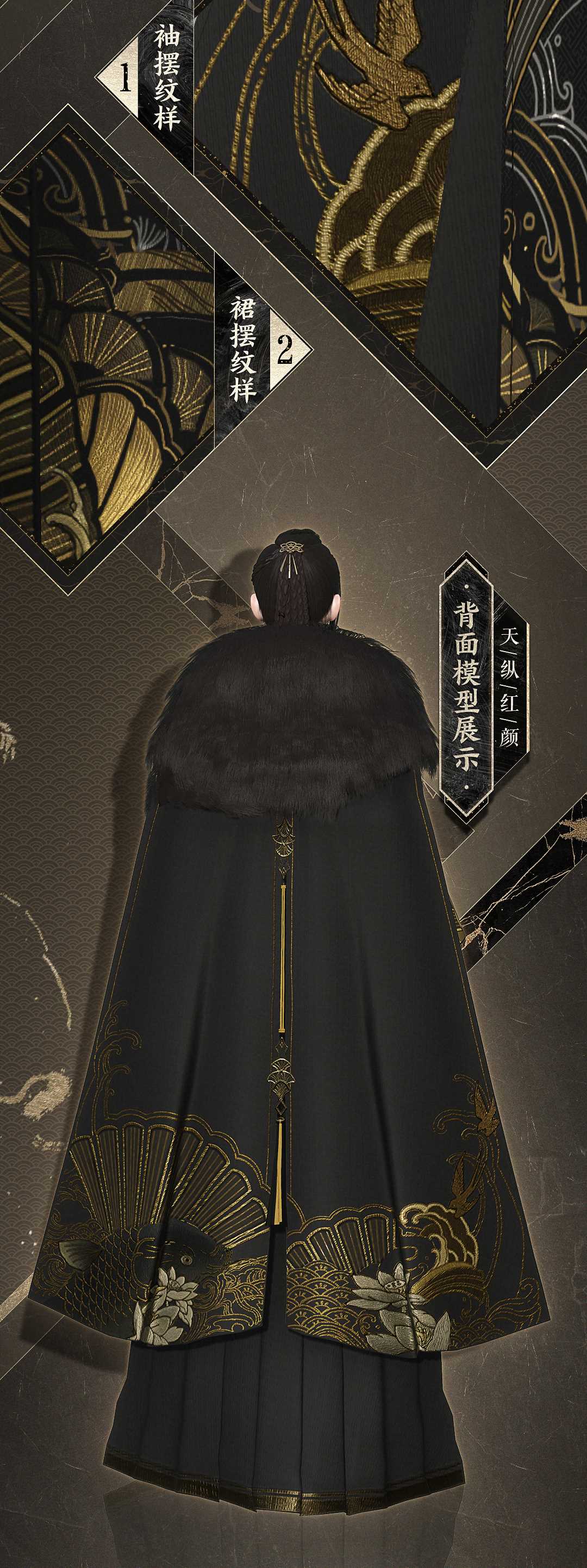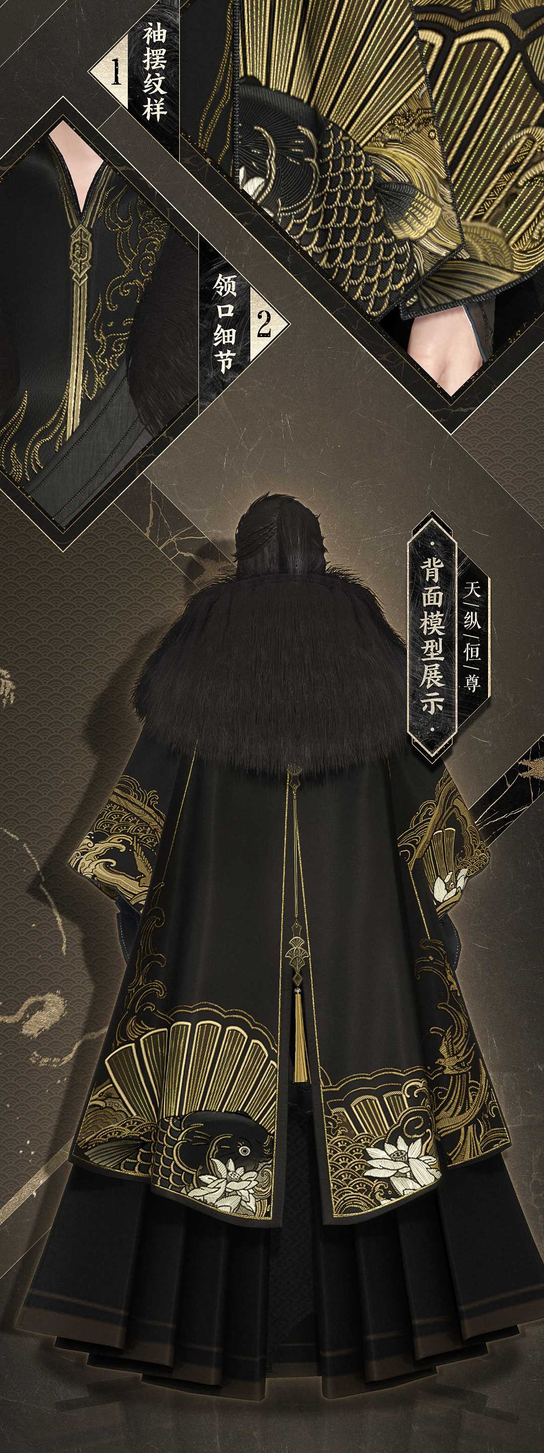 黑金配色本就奢华至极,再加上质感极好的毛裘和羽缎,胸口低调的金丝绣样,必然是威望颇高的大侠,才能镇得住这【天纵恒尊】。