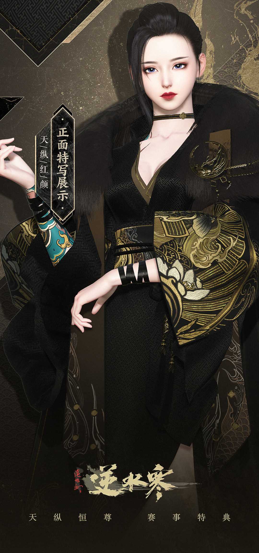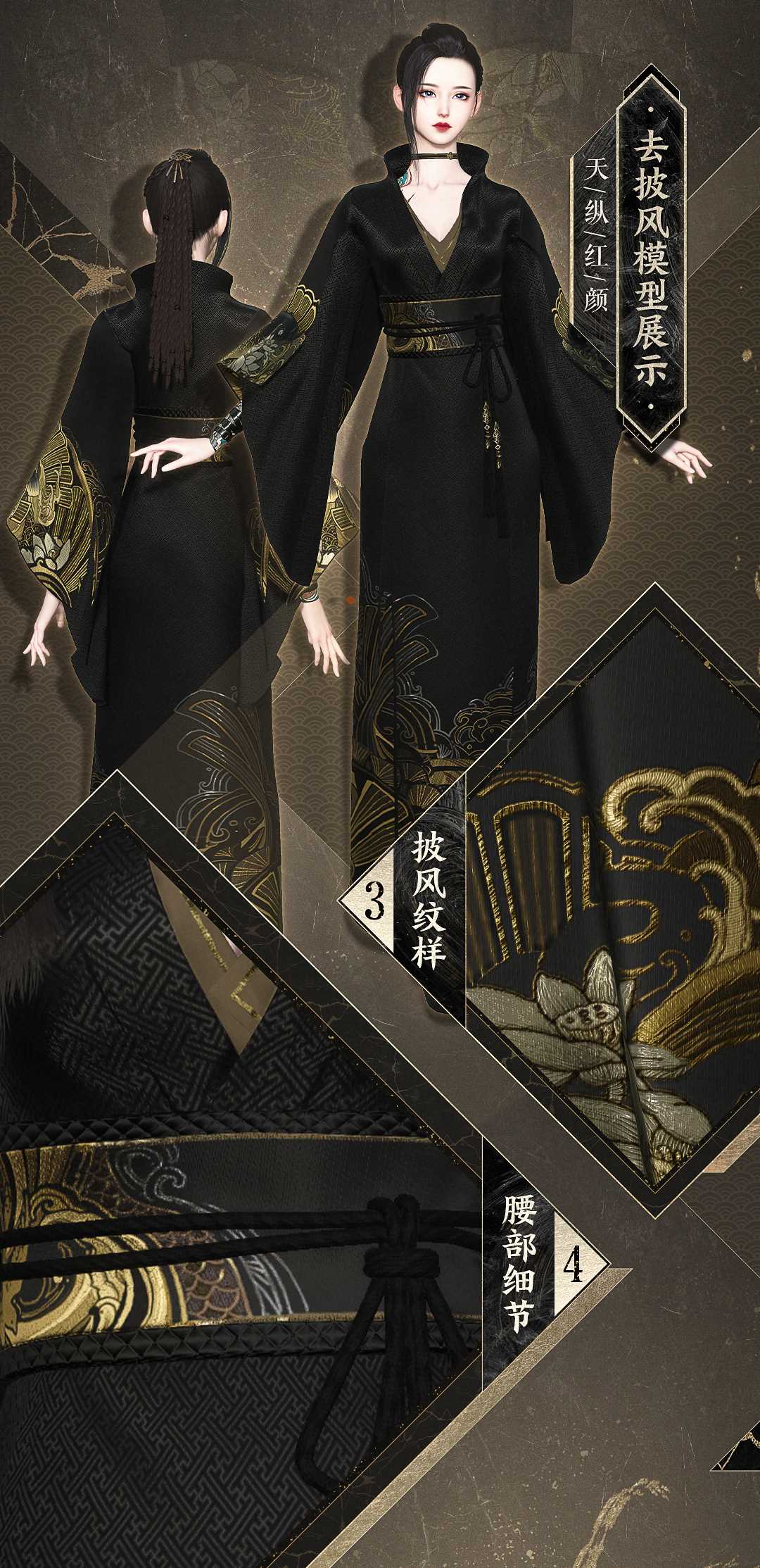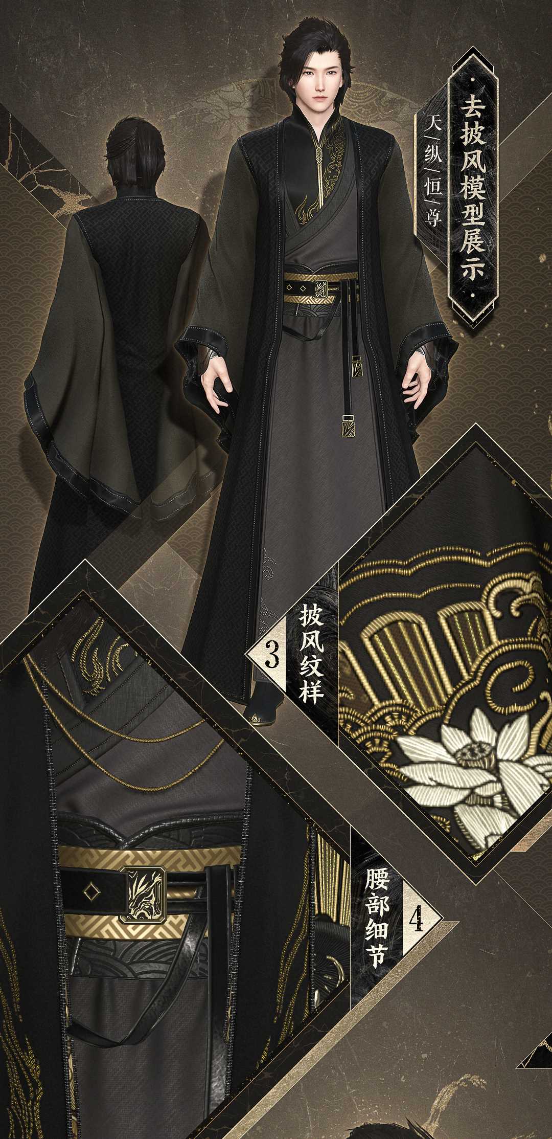 黑金配色本就奢华至极,再加上质感极好的毛裘和羽缎,胸口低调的金丝绣样,必然是威望颇高的大侠,才能镇得住这【天纵恒尊】。
